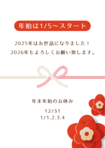 誠に勝手ながら、下記期間は年末年始休業とさせていただきます。
